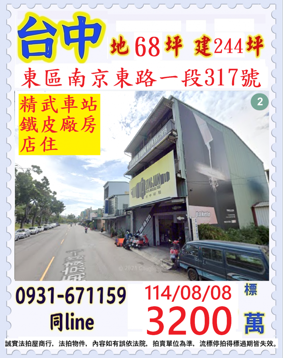張經理推薦/台中市東區南京東路一段(精武車站鐵皮廠房店住)