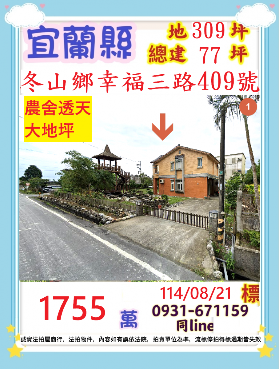 張經理推薦/宜蘭縣冬山鄉幸福三路(大地坪農舍透天)
