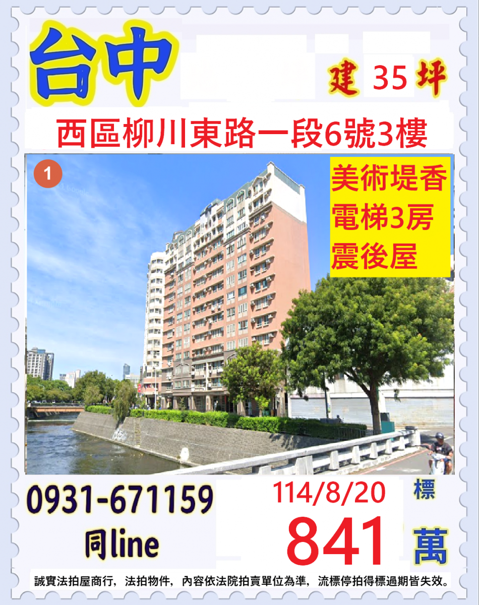 張經理推薦/台中市西區柳川東路一段(美術堤香漂亮電梯美三房)