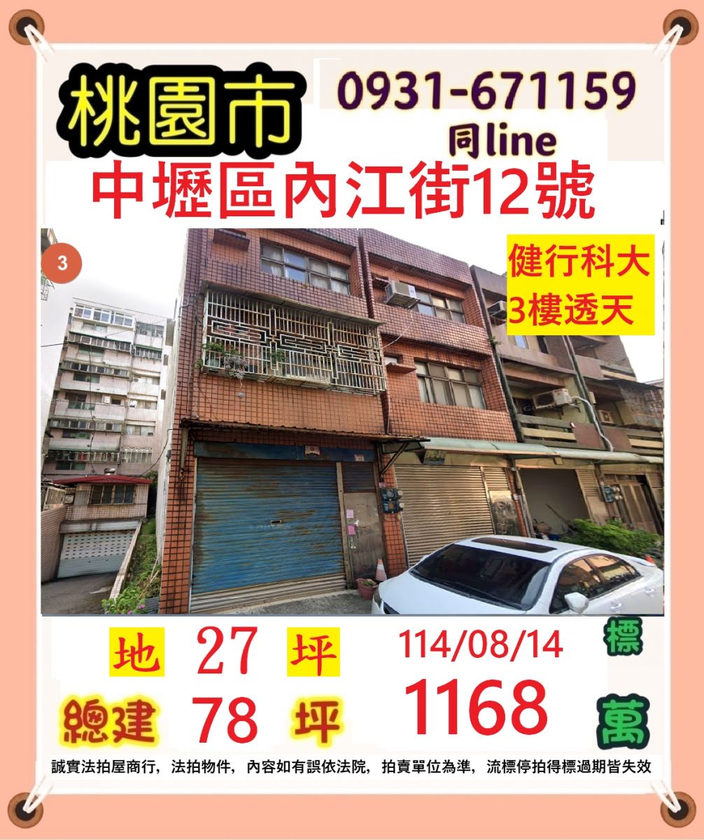 張經理推薦/桃園市中壢區內江街(健行科大三樓透天)
