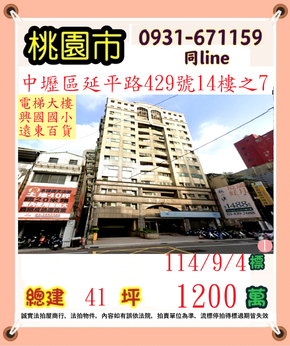 張經理推薦/桃園市中壢區延平路(興國國小大遠百電梯三房)