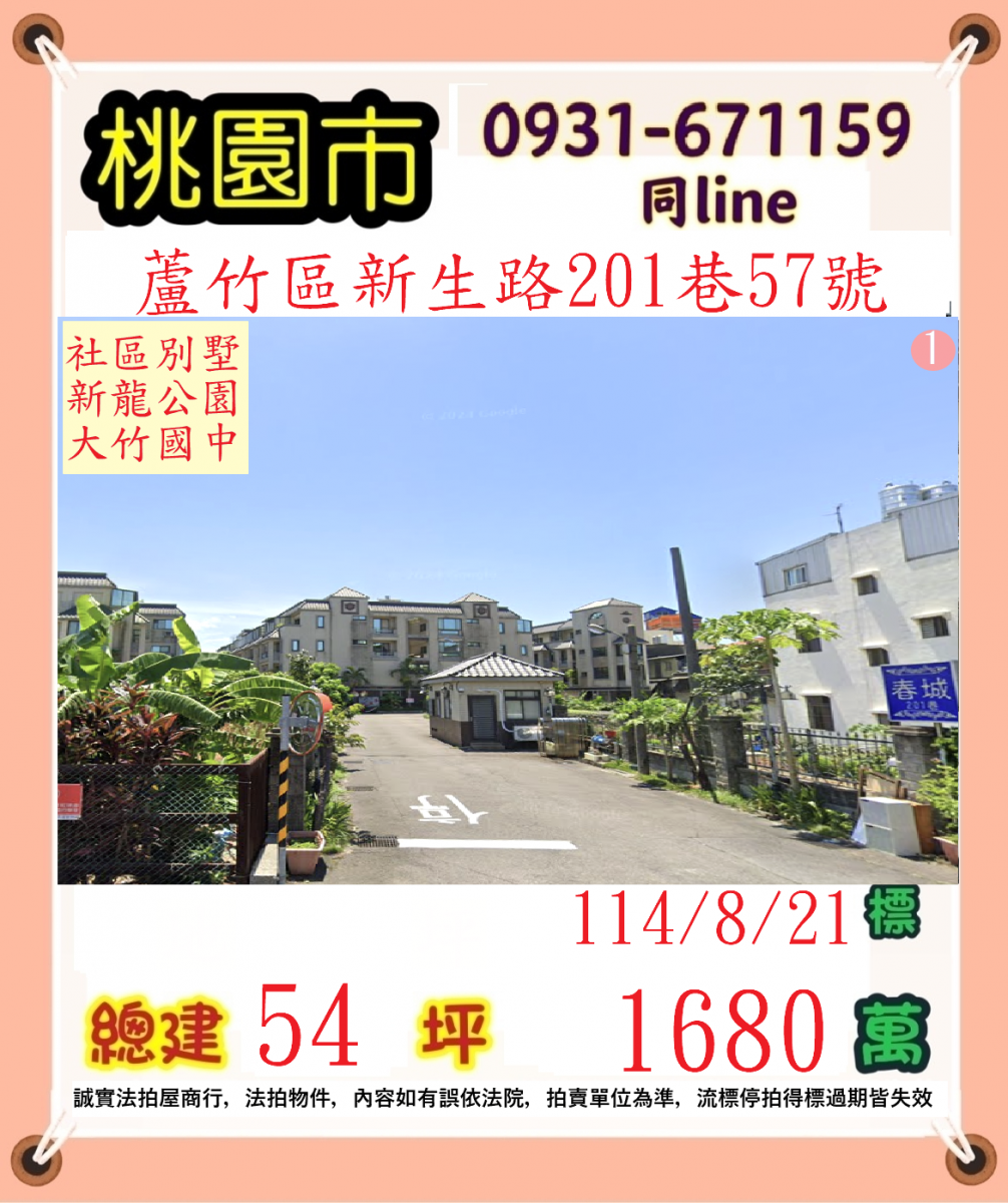 張經理推薦/桃園市蘆竹區新生路(新龍公園.大竹國中社區別墅)