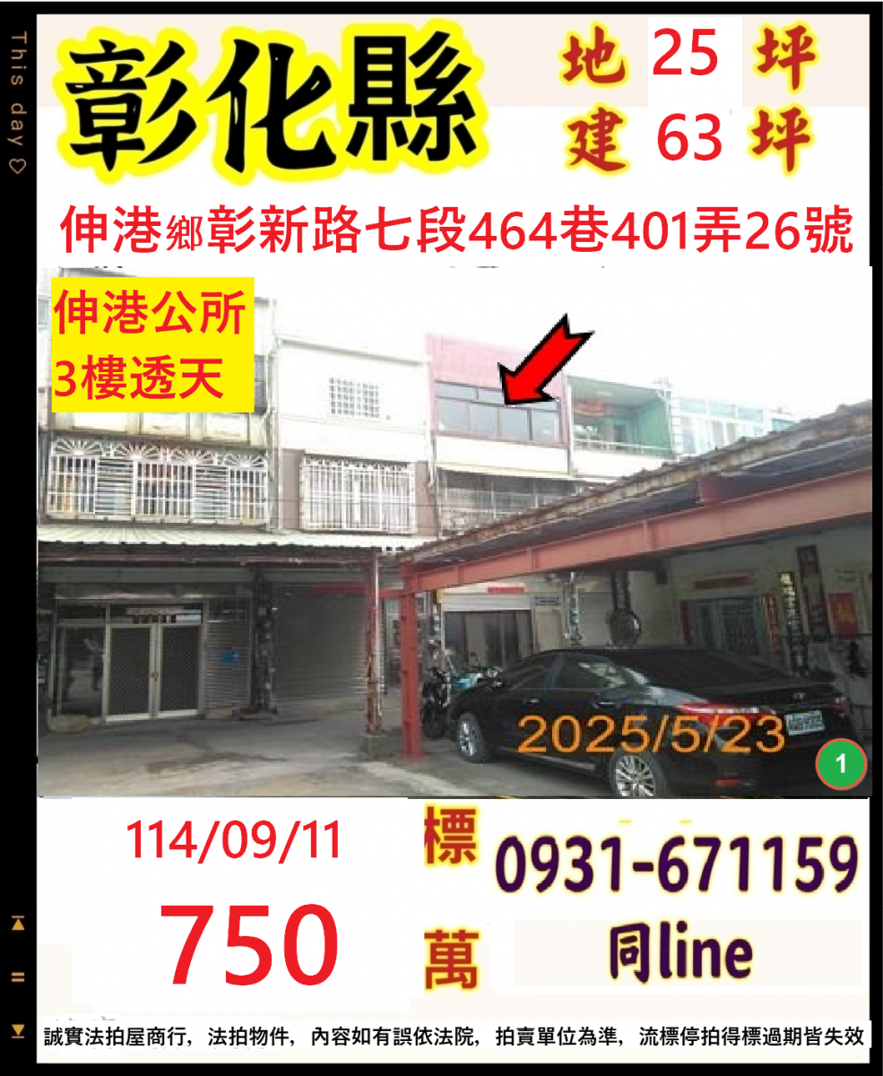 張經理推薦/彰化縣伸港鄉彰新路七段(伸港公所靜巷透天巷透天)