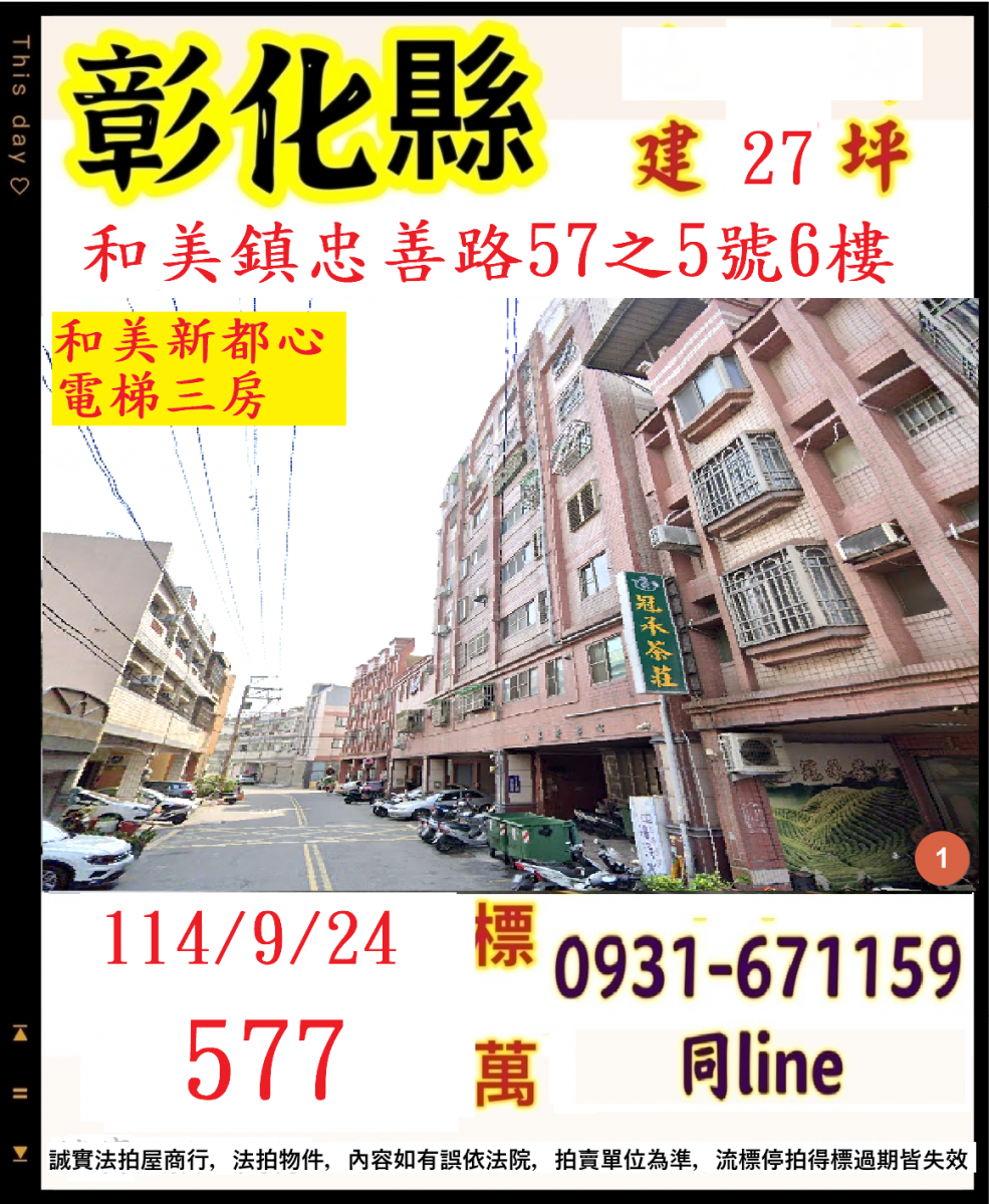 張經理推薦/彰化和美鎮忠善路(和美新都心電梯三房)