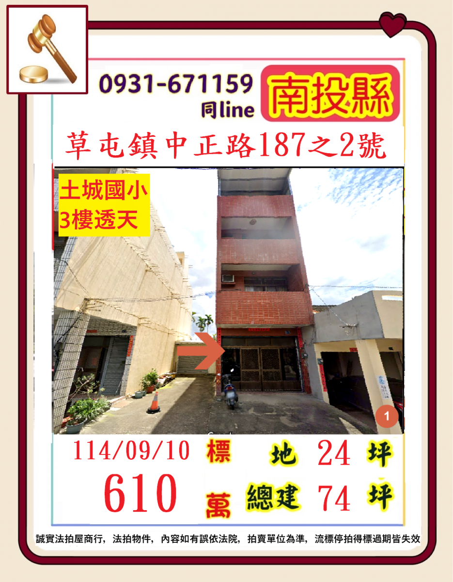 張經理推薦/南投縣草屯鎮中正路(土城國小三樓透天)