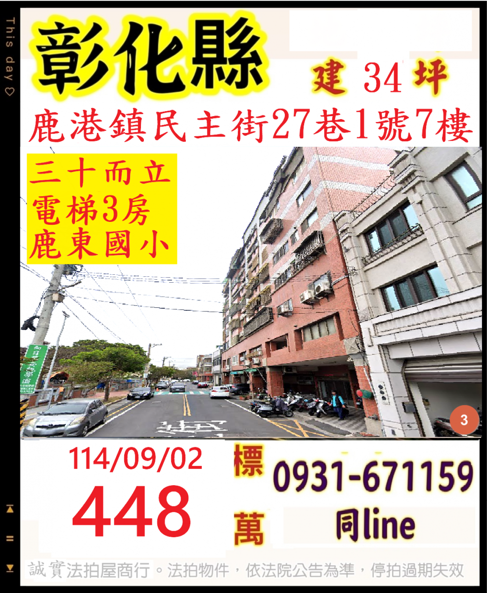 張經理推薦/彰化縣鹿港鎮民主街(三十而立電梯三房房車位)