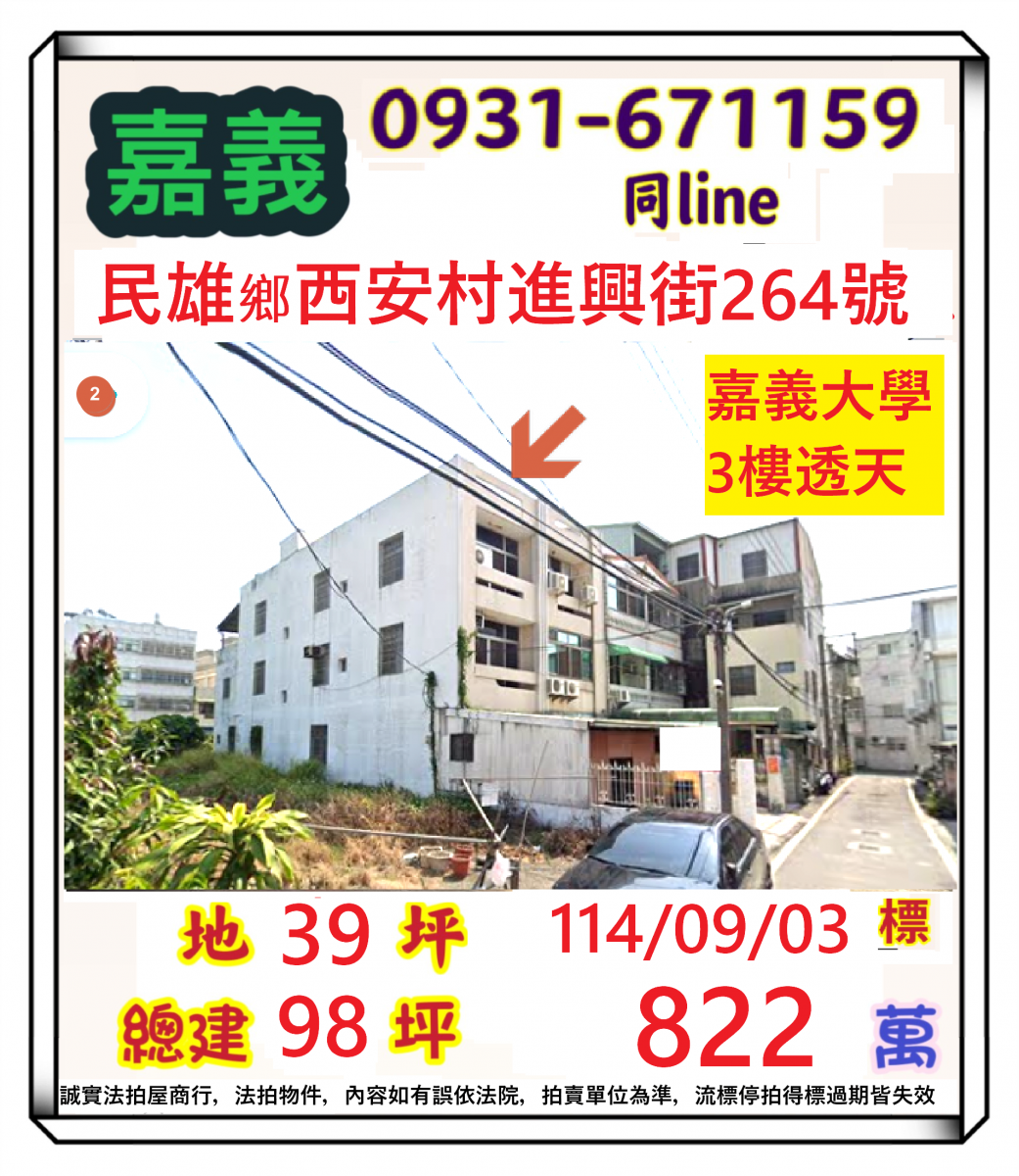 張經理推薦/嘉義縣民雄鄉進興街(嘉義大學邊間三樓美透天)