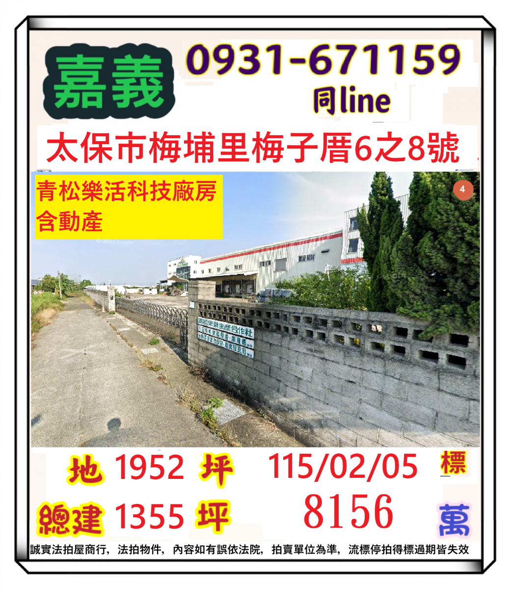張經理推薦/價一線太保市梅子厝(千坪廠房16年烏)