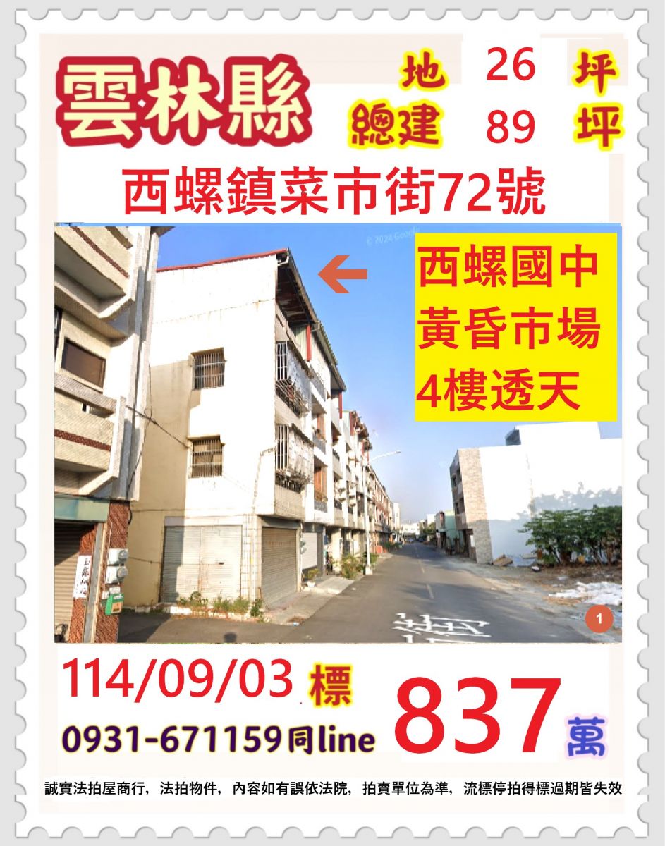 張經理推薦/雲林縣西螺鎮菜市街(西螺國中黃昏市場四樓透天)