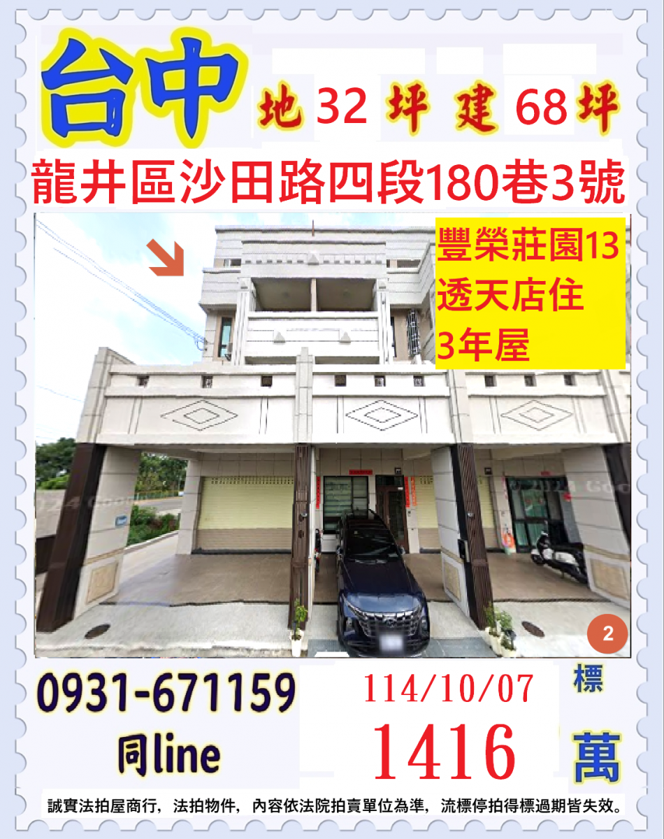 台中市龍井區沙田路四段180段巷3號