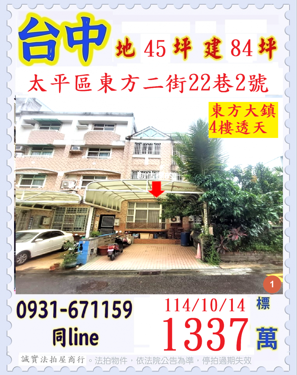 張經理推薦/台中市太平區東方二街(東方大鎮四樓透天)