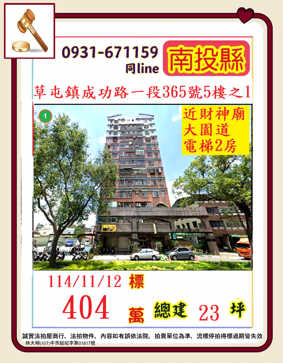 張經理推薦/南投草屯鎮成功路一段(近財神廟大園到電梯二房)