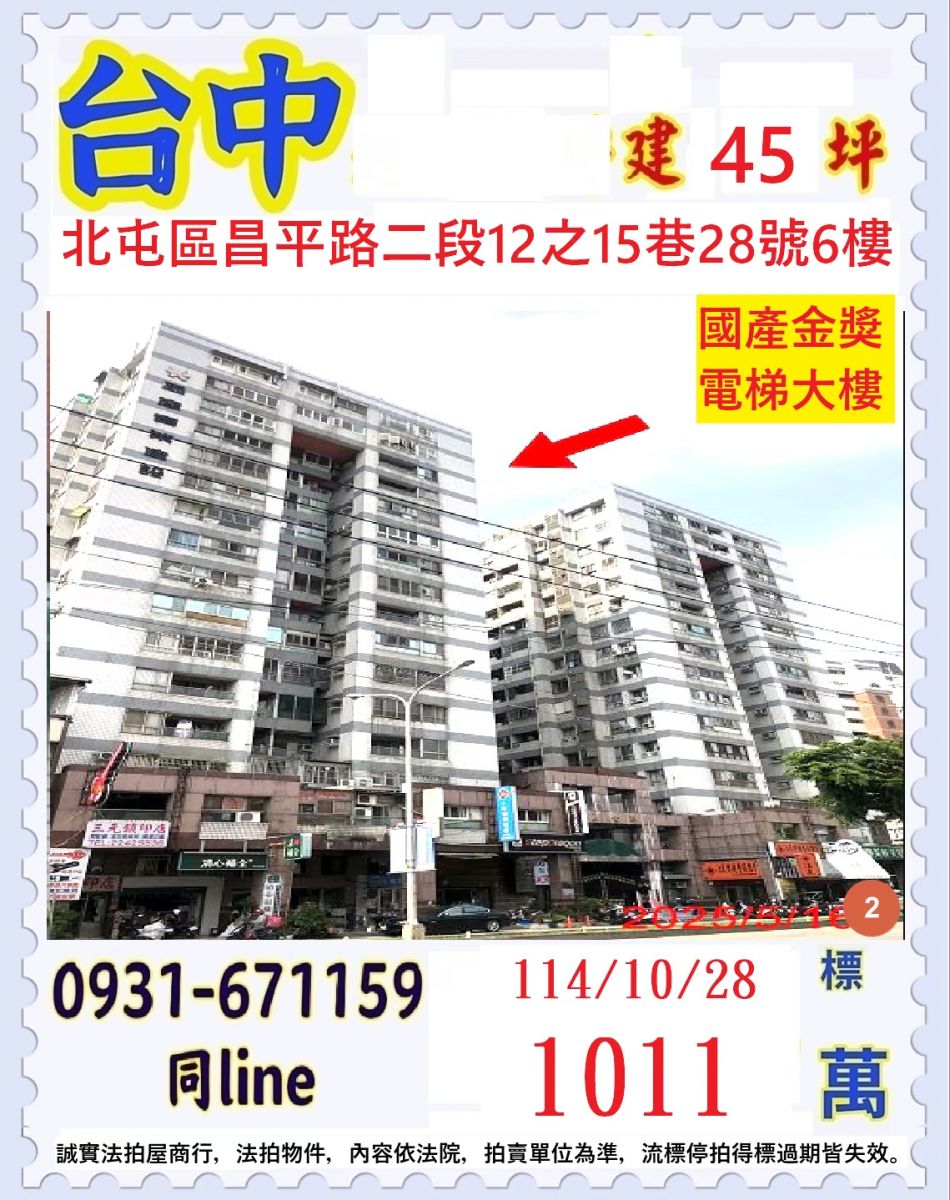 張經理推薦/台中市北屯昌平路二段(國產金獎電梯大樓)