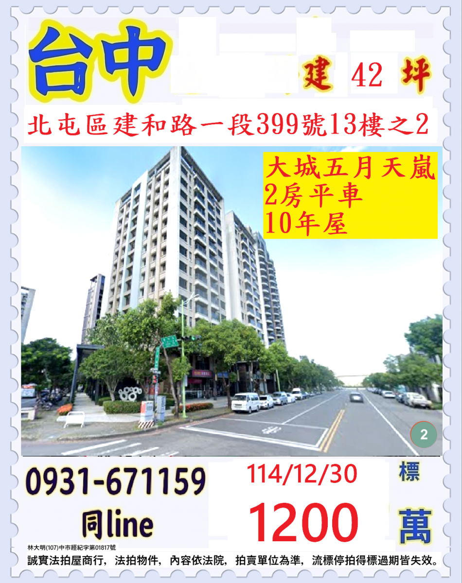 張經理推薦/台中市北屯區建和路一段(大城五月天嵐二房+平車)
