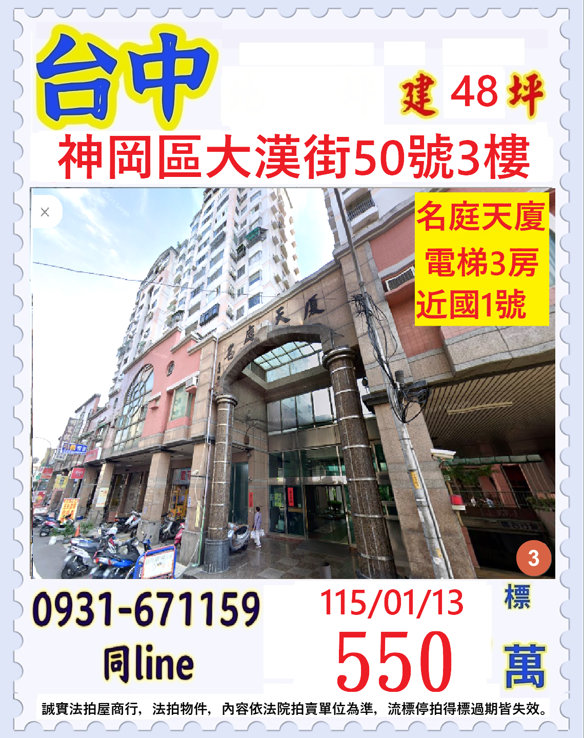 張經理推薦/台中市神岡區大漢街(名廷天廈電梯三房)
