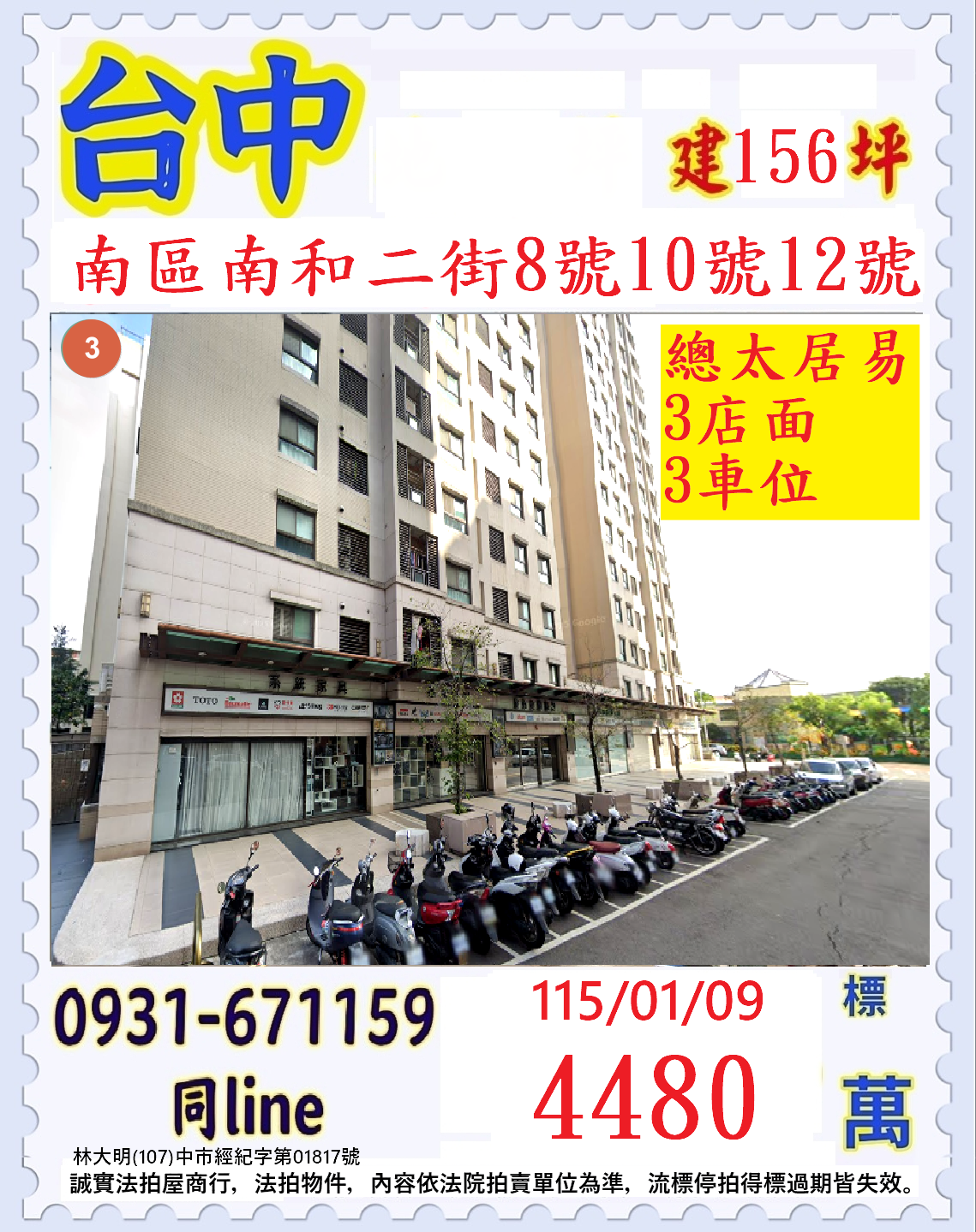 張經理推薦/台中市南區南和二街(總太居易三店面+三車位)