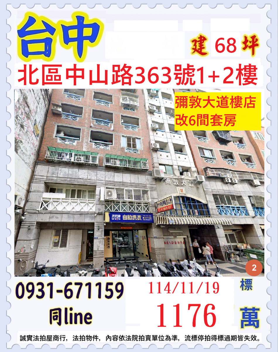 張經理推薦/台中市北區中山路(彌敦大道1+2樓改6間套房)