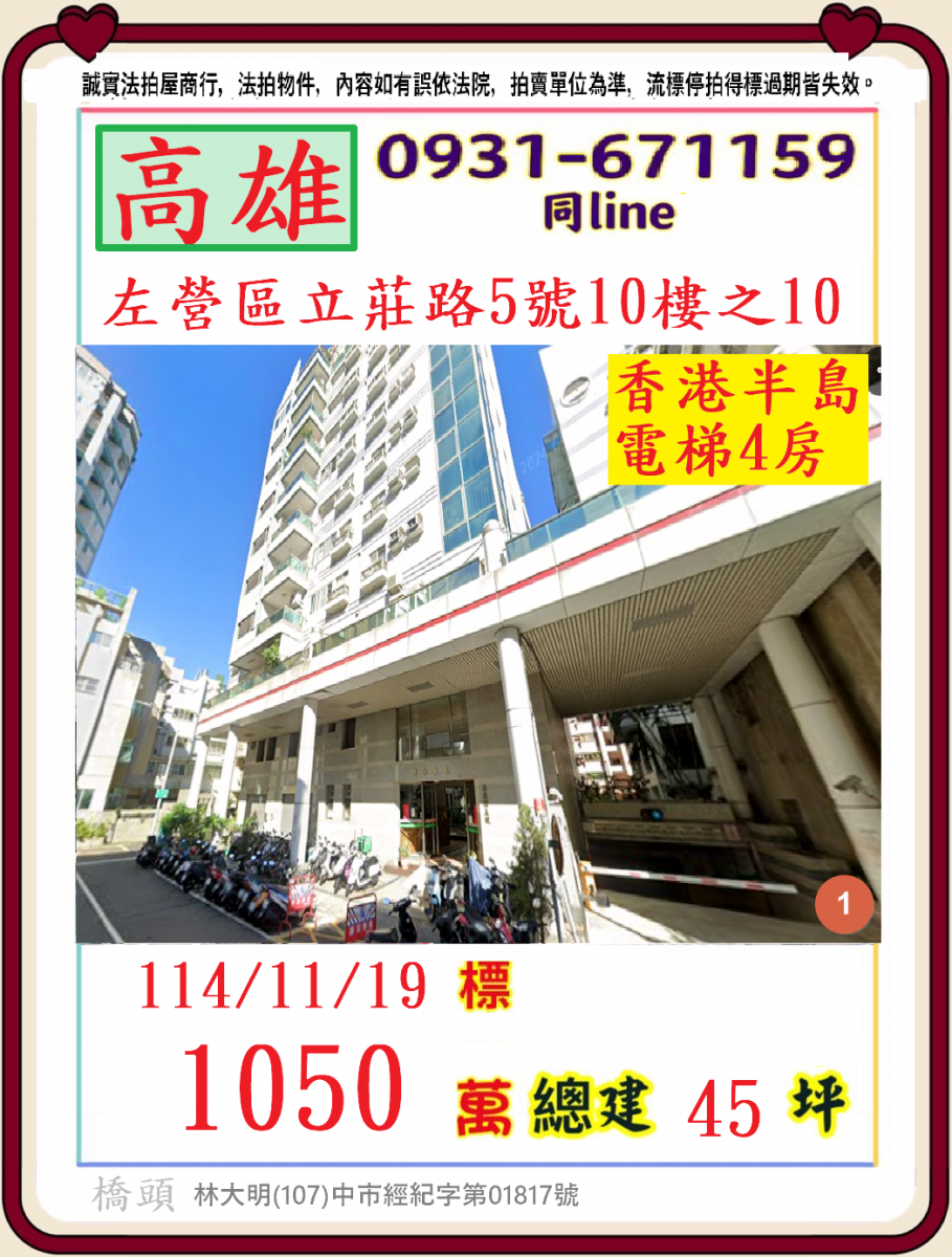 張經理推薦/高雄市左營區立莊路(香港半島電梯四房視野戶)