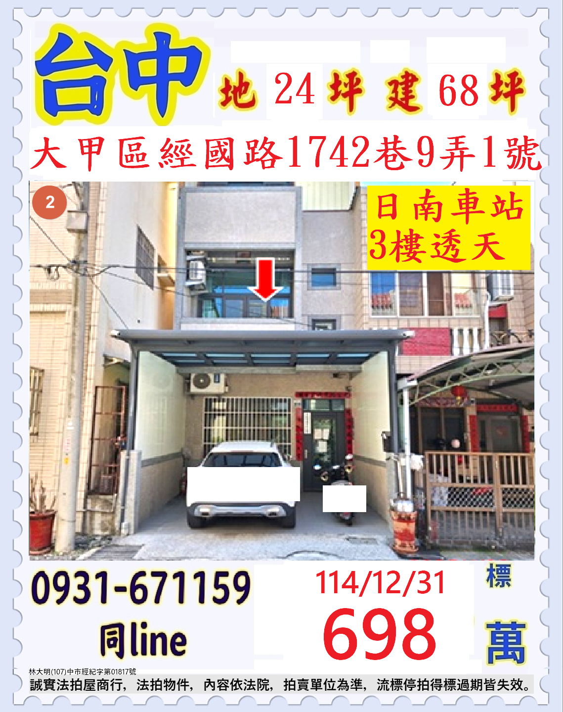 張經理推薦/台中市大甲區經國路(日南車站三樓透天)