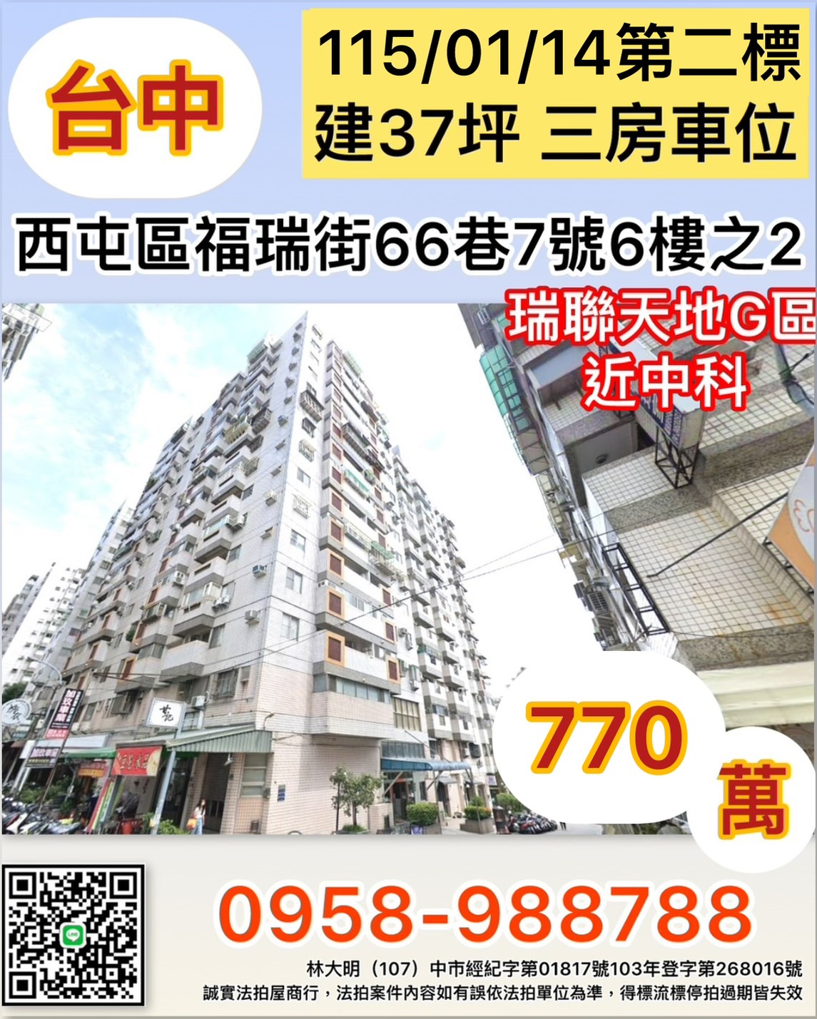 杜姐幫你成家台中西屯近中科瑞聯天地三房車位