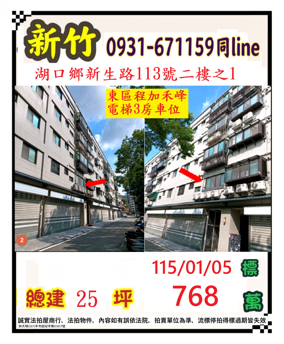 張經理推薦/新竹縣湖口鄉新生路(東區程加禾豐電梯三房+車位)