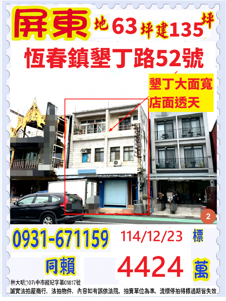 張經理推薦/屏東縣恆春鎮墾丁路(大面寬大地坪透天店面)