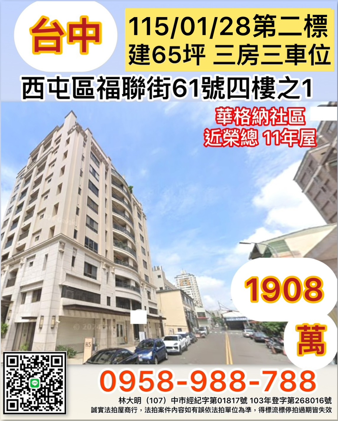 杜姐幫你成家台中西屯區華格納社區三房三車位