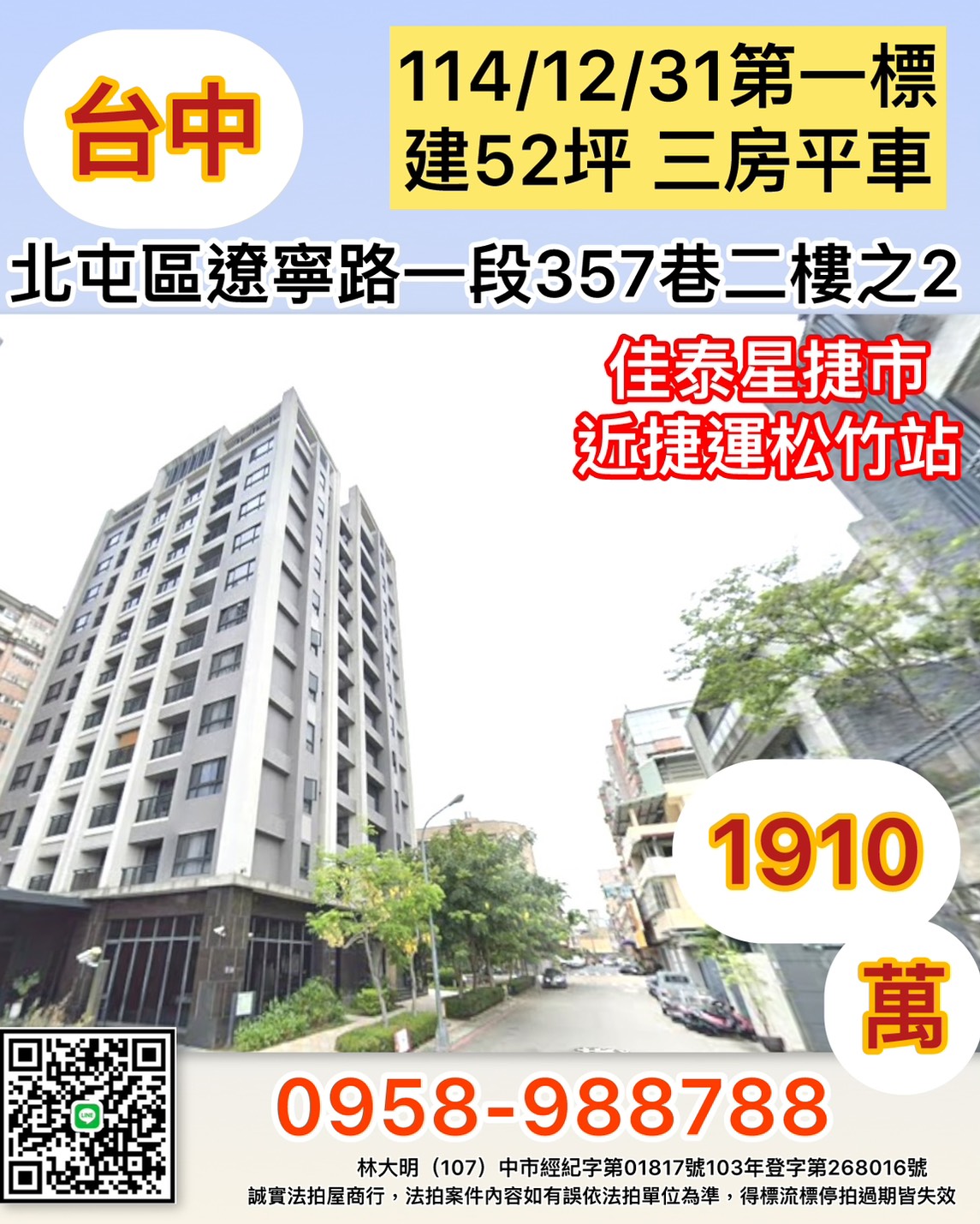 杜姐幫你成家台中北屯區星捷市社區三房平車