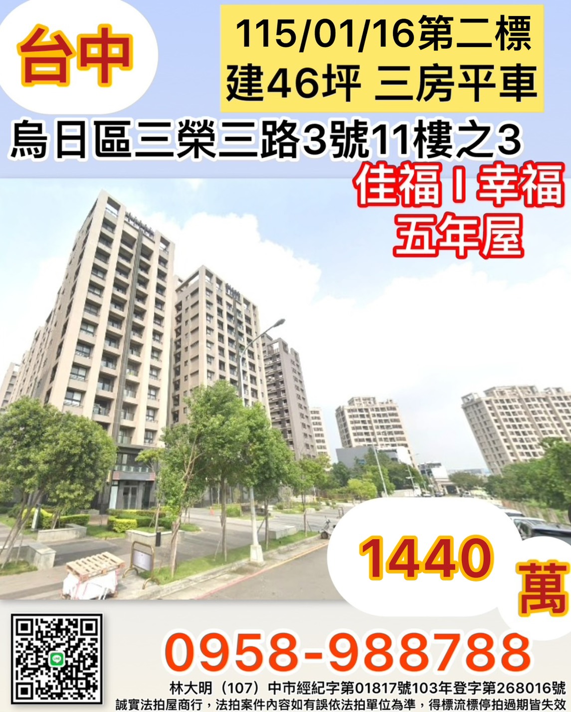 杜姐幫你成家台中烏日區家福I幸福三房平車