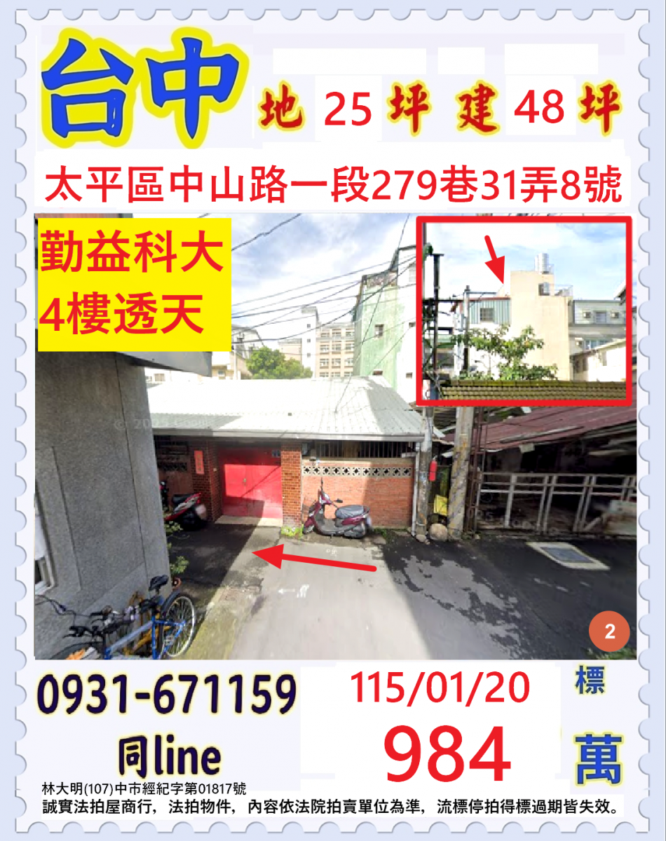 張經理推薦/台中市太平區中山路一段(勤益科大四樓透天)