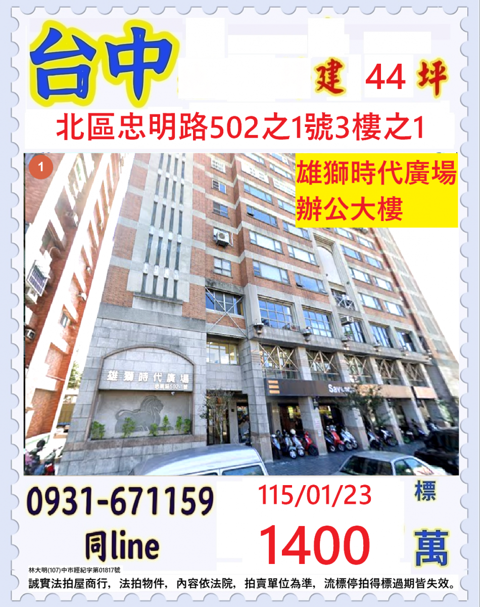 張經理推薦/台中市北區忠明路(雄獅時代廣場辦公大樓)