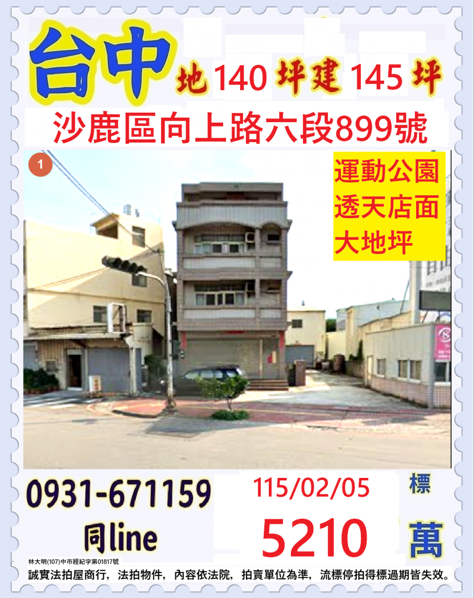 張經理推薦/台中市沙鹿區向上路六段(運動公園透大地坪天店面)