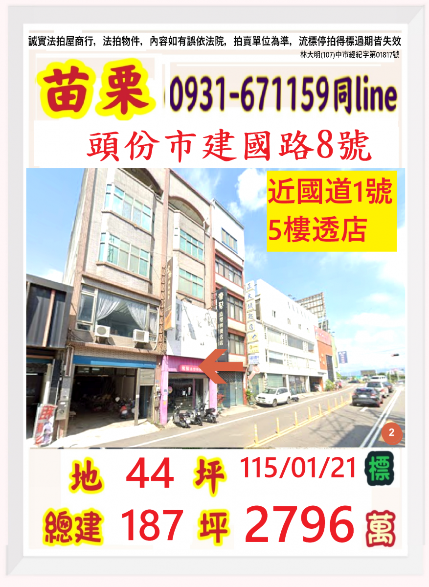 張經理推薦/苗栗縣頭份市建國路(正建國路五樓透天店面)