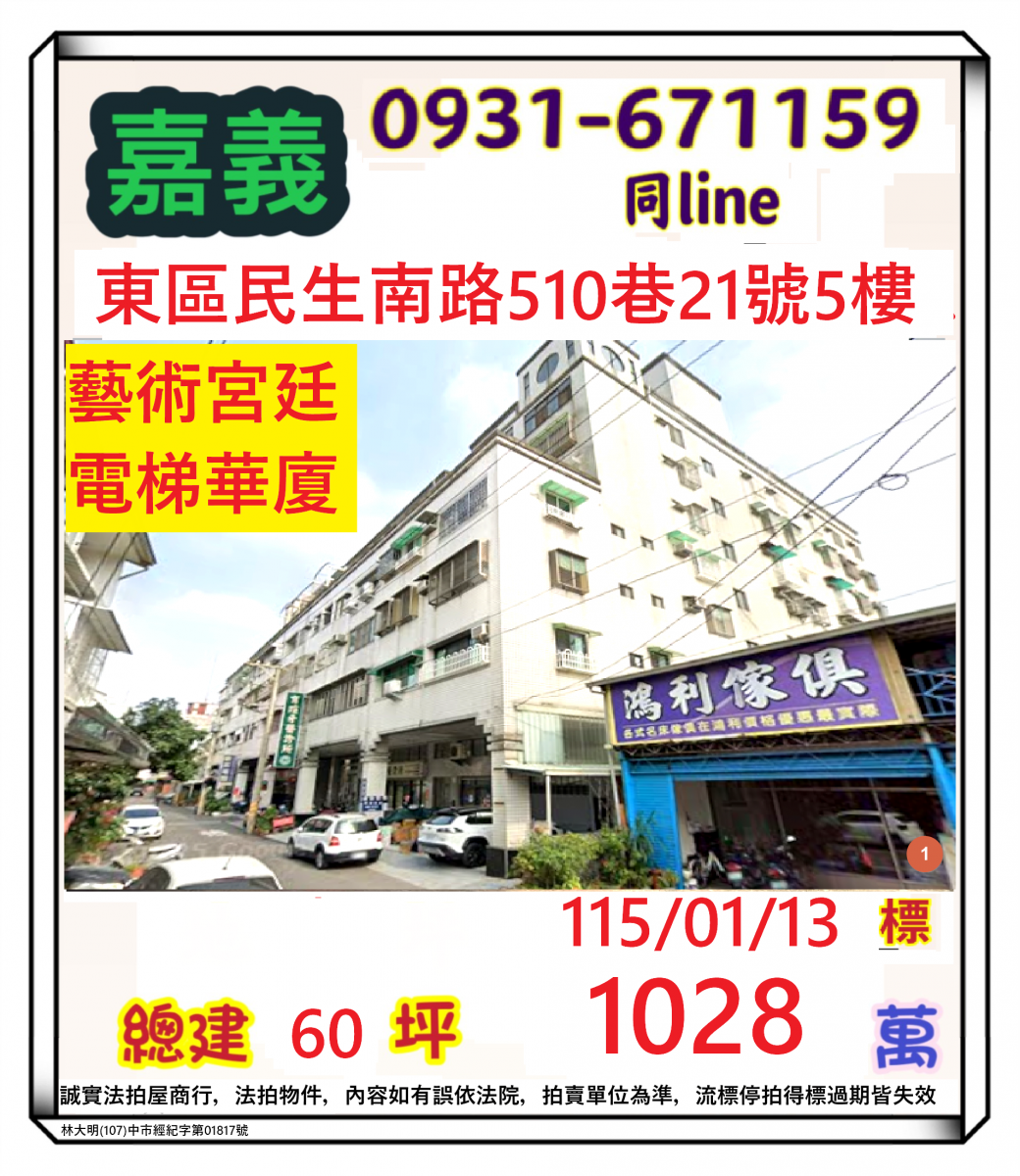 張經理推薦/嘉義市東區民生南路(藝術宮廷電梯華廈)
