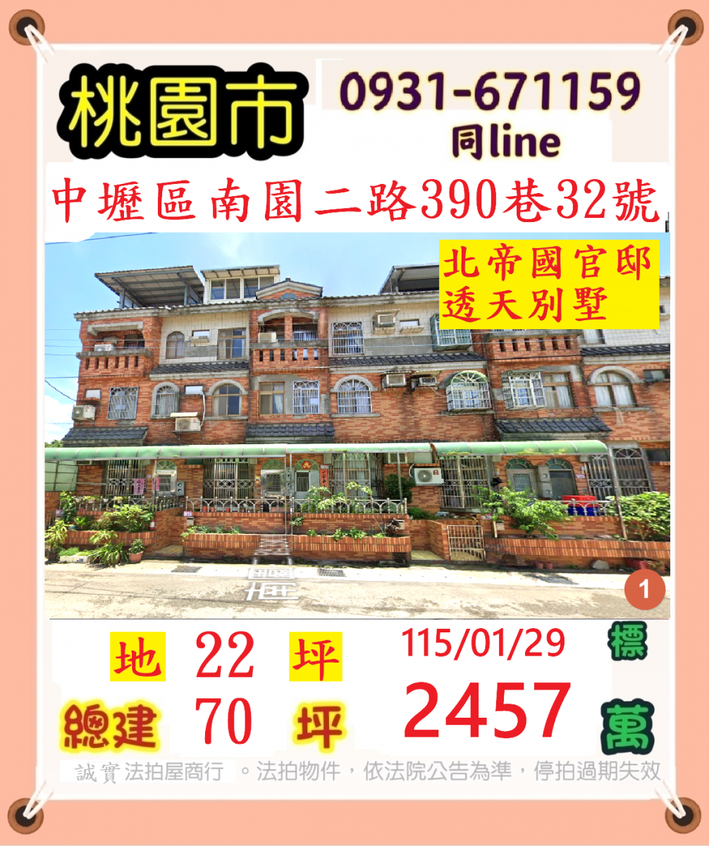 張經理推薦/桃園市中壢區南園二路(北帝國官邸透天別墅)