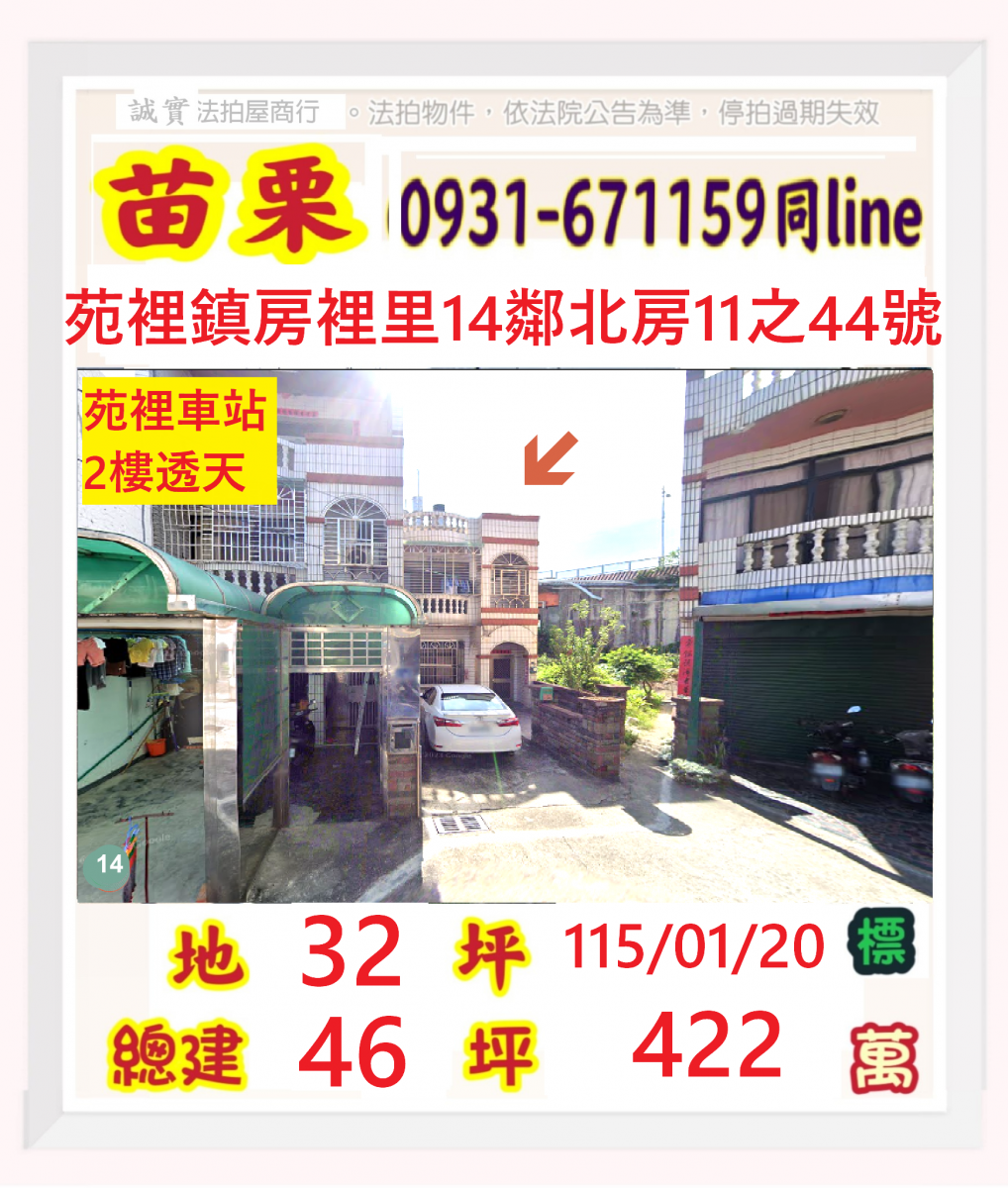 張經理推薦~苗栗縣苑裡鎮/北房11之44號(苑裡車站二透天)