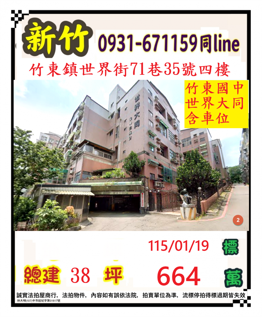 張經理推薦/新竹縣竹東鎮世界街(竹東國中世界大同+車位)