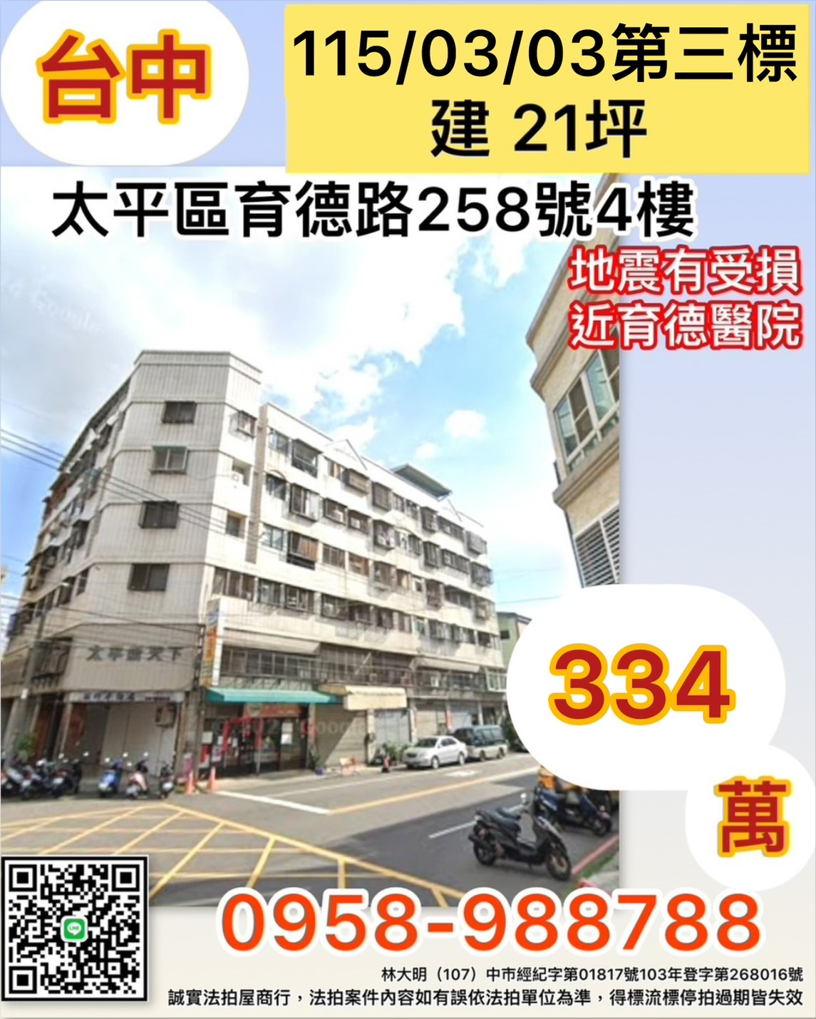 台中市太平區育德路258號4樓