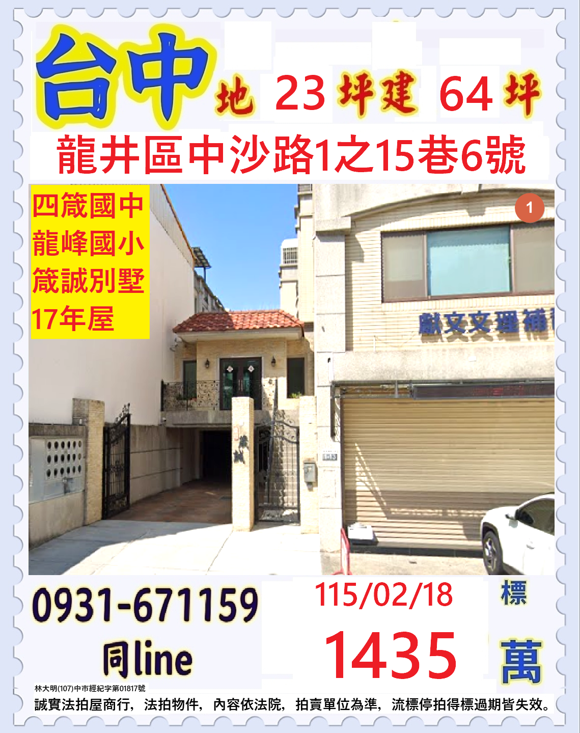 店長推薦/台中市龍井區中沙路(四箴國中箴城別墅)