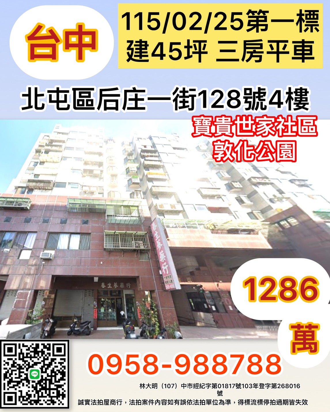 首頁 | 杜姐助你輕鬆成家台中北屯寶貴世家三房平車