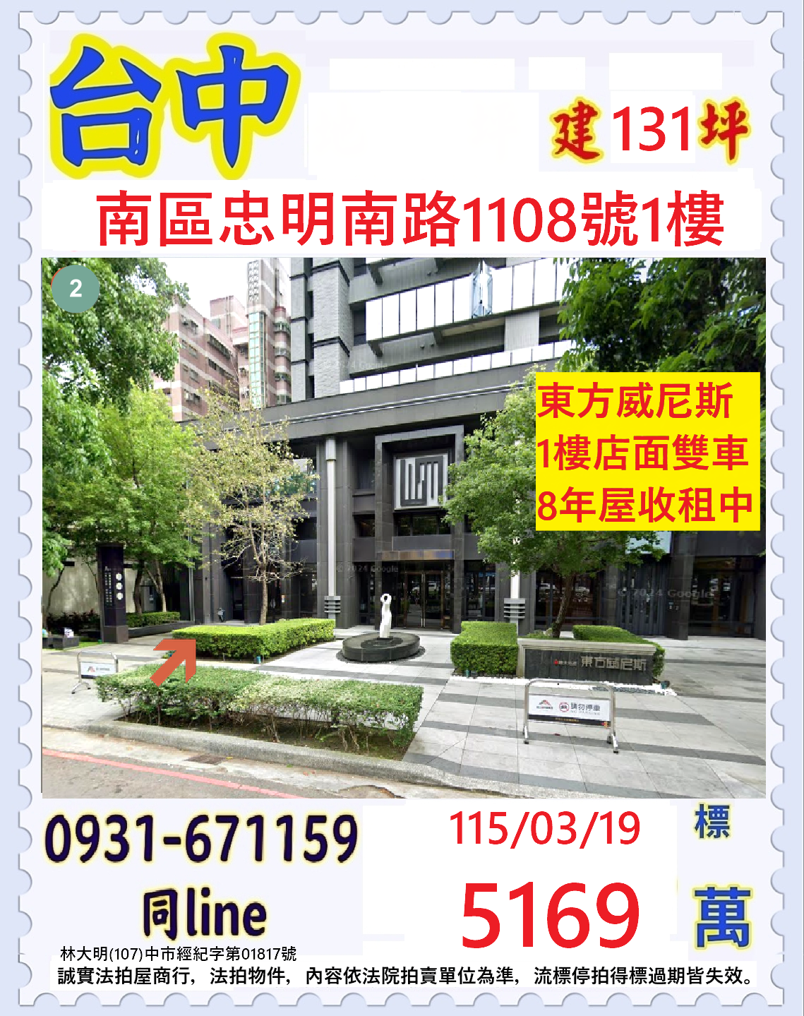 店長推薦/台中市南區忠明南路(東方威尼斯1樓店面雙車位八年屋)
