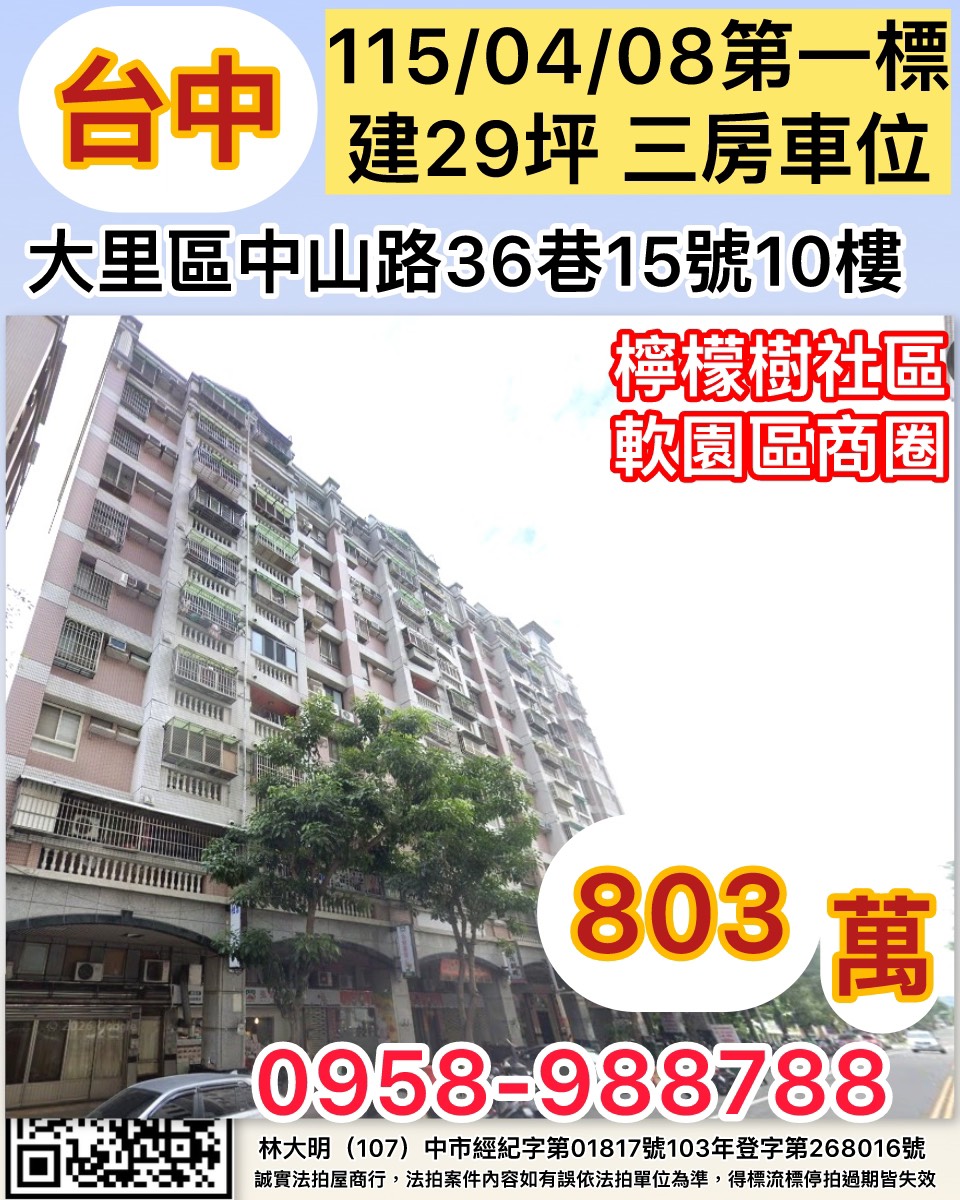 杜姐助你輕鬆成家台中大里區檸檬樹三房車位
