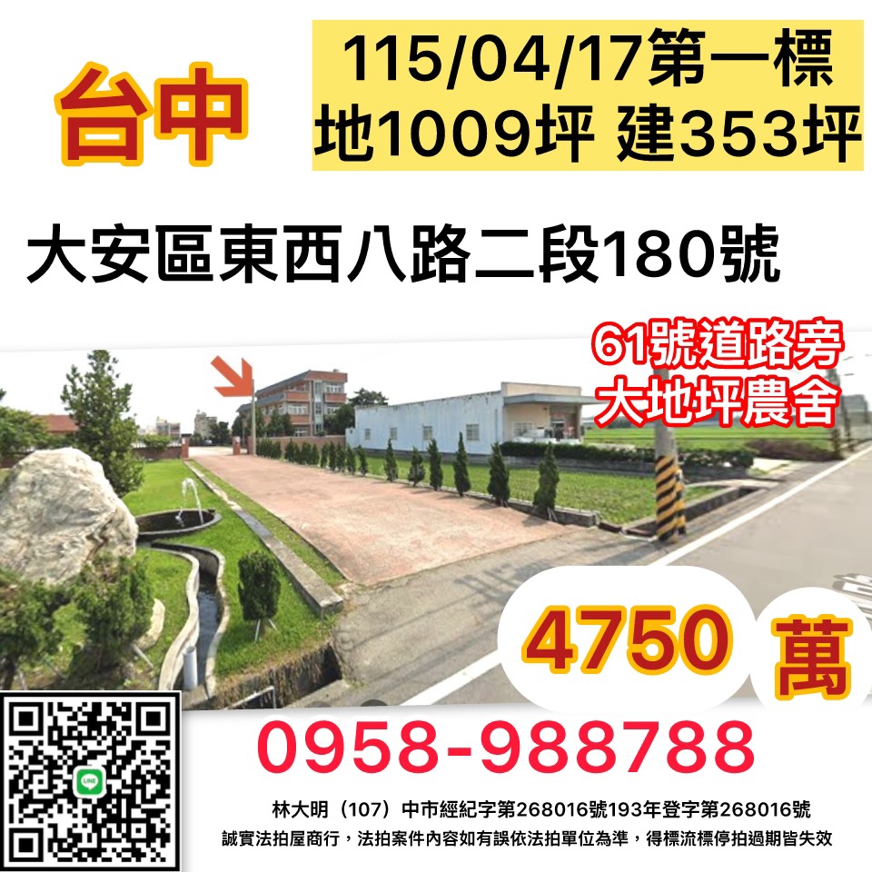 杜姐助你輕鬆成家台中大安區超大地坪農舍