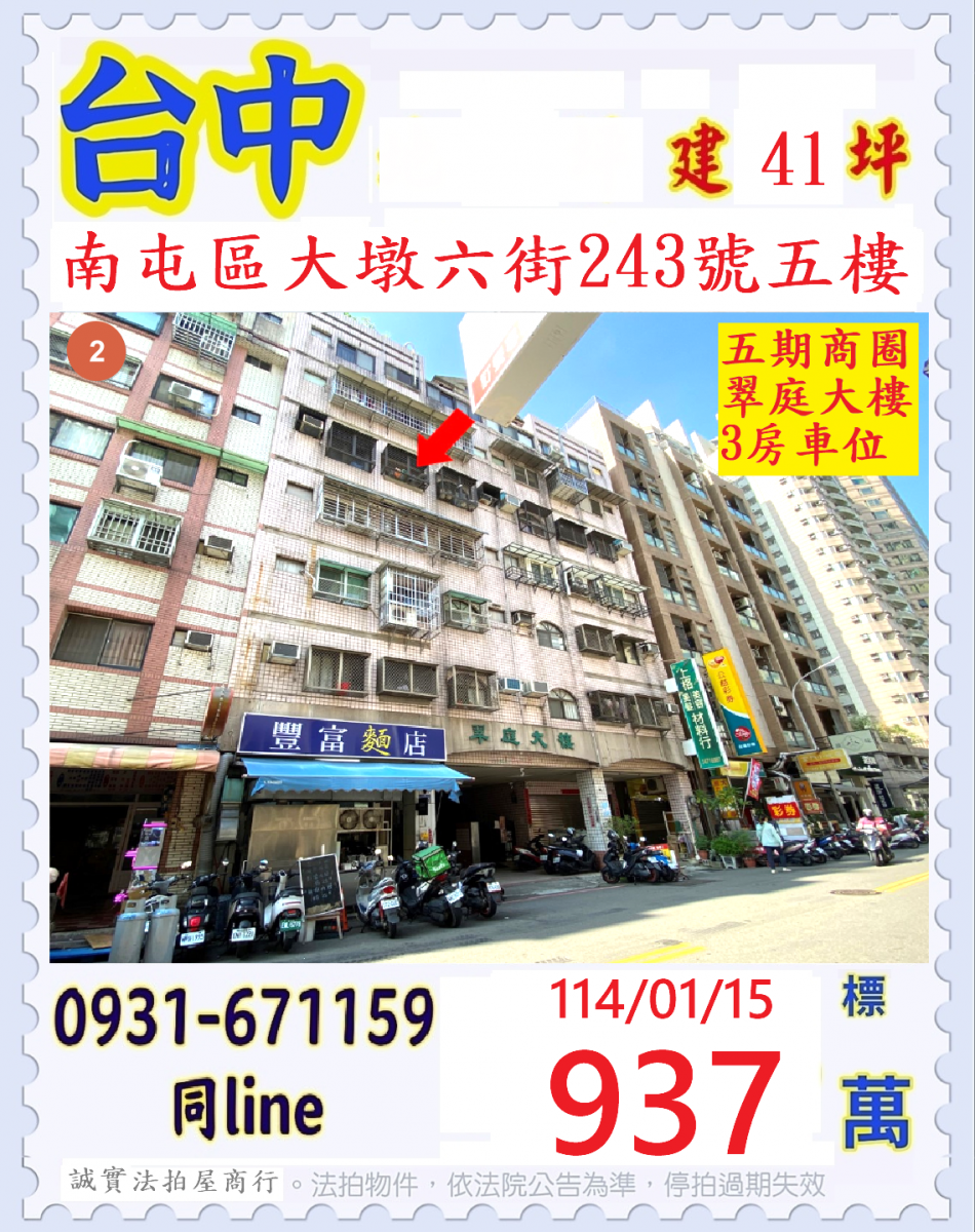 張經理推薦/台中市南屯大墩六街(五期商圈翠庭大樓三房車位)