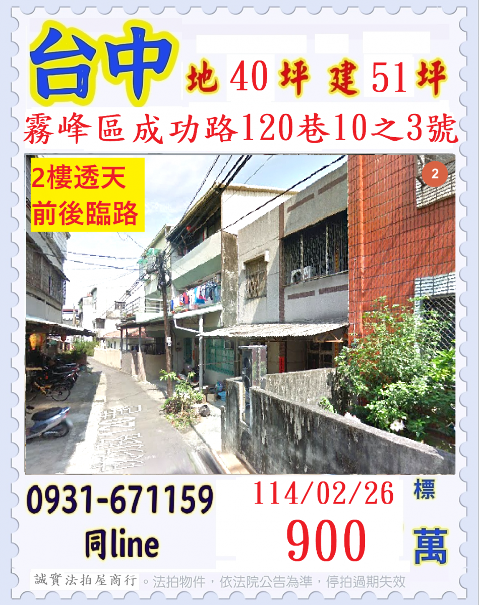 張經理推薦/台中霧峰成功路前後臨路透天