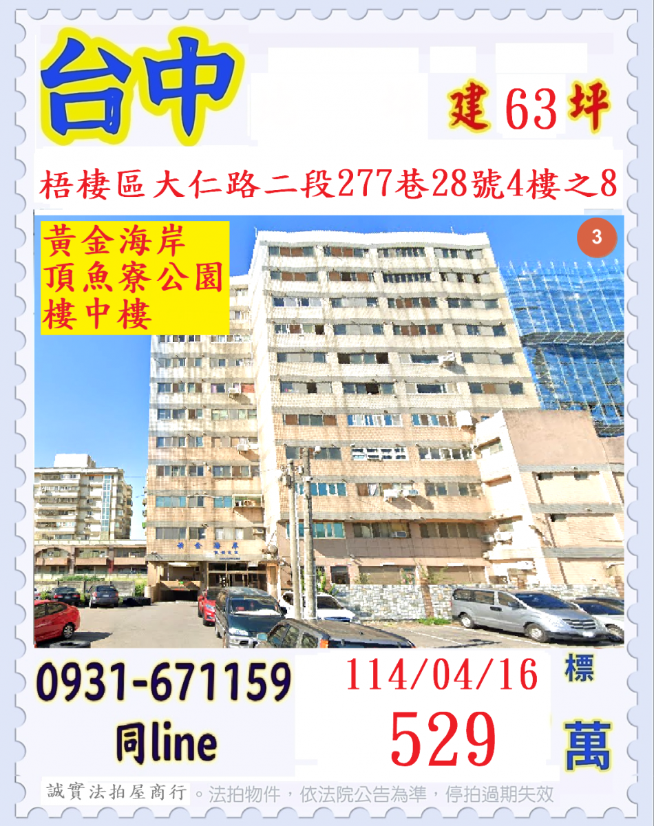 張經理推薦/台中梧棲區大仁路(黃金海岸頂魚寮公園樓中樓)