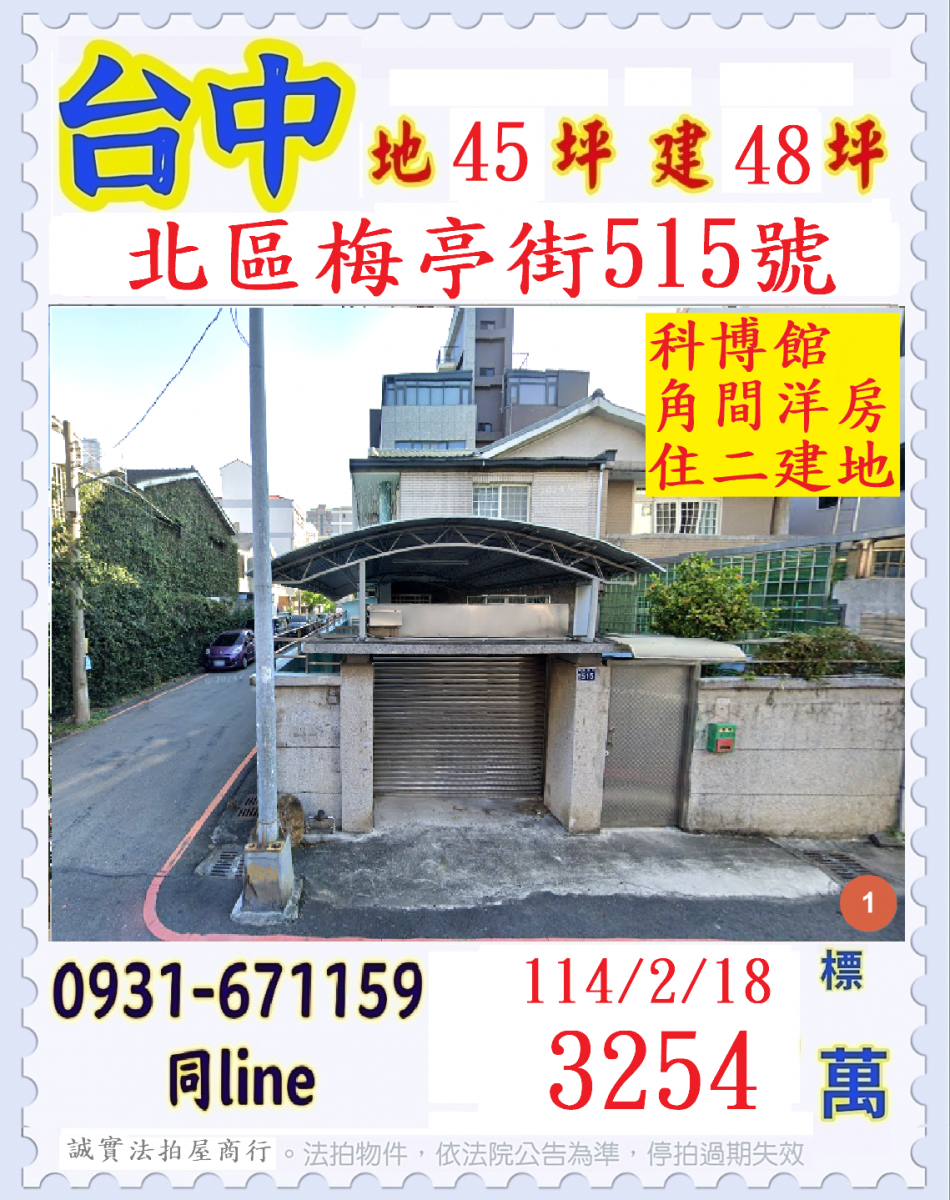首頁 | 張經理推薦/台中市北區梅亭街(科博館角間洋房住二建地)