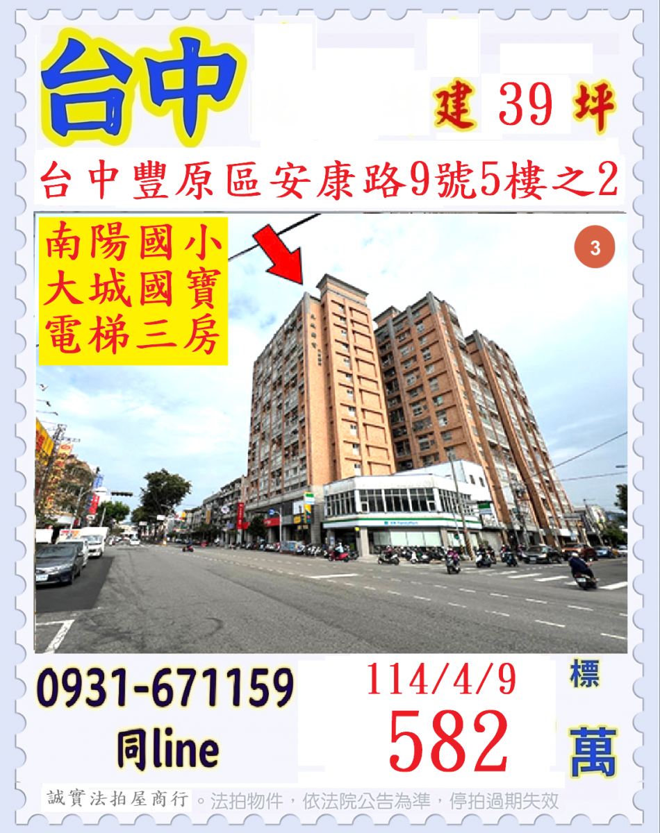 張經理推薦/台中市豐原區南陽國小(大城國寶電梯三房)