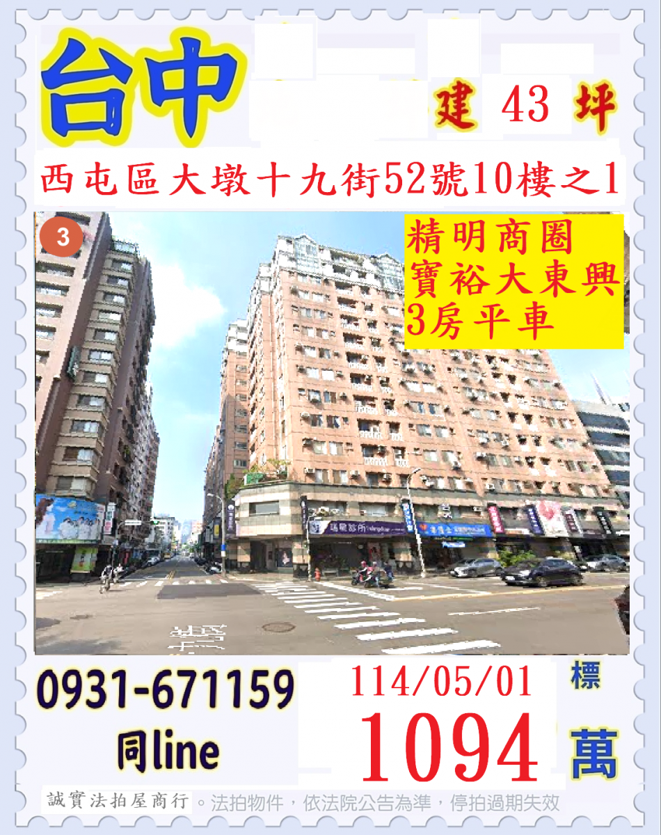 台中市西屯區大墩十九街52號10樓之1