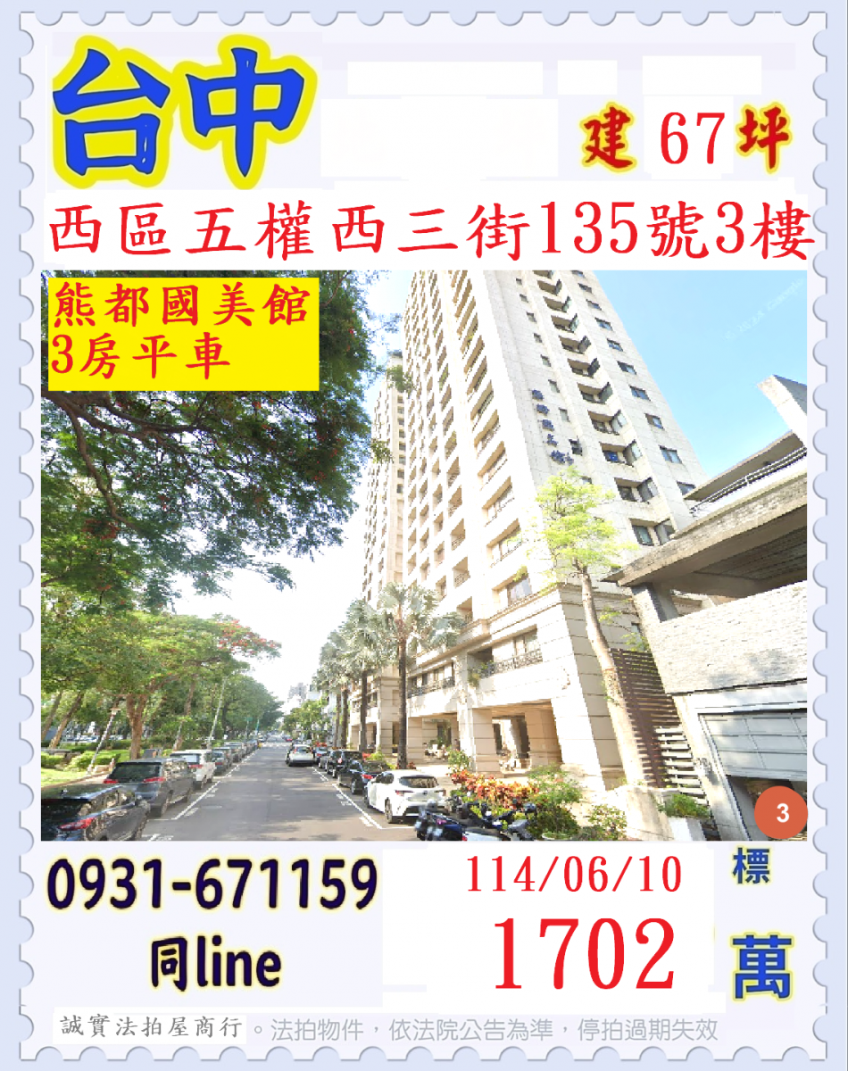 首頁 | 張經理推薦/台中市西區五權西三街(熊都國美館三房平車)